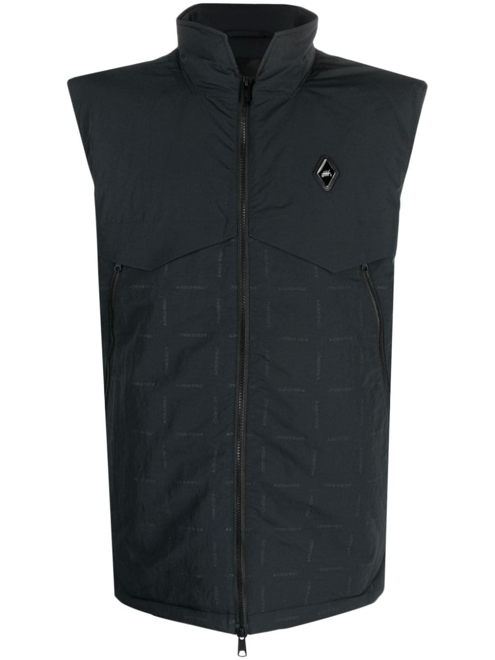 logo-patch printed gilet Crafted from upcycled materials, this gilet by A-COLD-WALL* features a faded logo print that adds a subtle branding tone. A practical two-way zip fastens the garment, while a logo patch completes the design. Highlights - Black - Recycled polyester - All-over logo print - Logo patch at the chest - High neck - Front two-way zip fastening - Two side zip-fastening pockets - Sleeveless - Rear curved hem Imported Composition Lining: Recycled Polyester 100%, Polyester 100% Outer: Polyester 100% SIZE & FIT Model measurements Height 6 ft 2 in(1.89 m) Bust/Chest 37.79 in(96 cm) Hips 37 in(94 cm) Waist 29.92 in(76 cm) FittingInformation Designed for a relaxed fit, this piece allows for comfort and movement when worn Made from a padded non-stretch fabric, giving it no natural elasticity This piece fits true to size – take your usual size