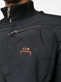 logo-print asymmetric padded jacket A-COLD-WALL* presents a technical take on streetwear with this padded jacket. The asymmetric silhouette is focused on functionality with its practical zipped pockets at the front. Made in United Kingdom Composition Outer: Polyester 100% Lining: Polyester 100%, Recycled Polyester 100% SIZE & FIT Model measurements Height 6 ft 2 in(1.87 m) Bust/Chest 36.22 in(92 cm) Hips 37 in(94 cm) Waist 27.95 in(71 cm) FittingInformation This piece fits true to size. We recommend you get your regular size Cut for a relaxed fit Made with a mid-weight non-stretch fabric Washing instructions Machine Wash