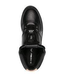 logo-print leather high-top sneakers Highlights - Black - Calf leather - Panelled design - Logo print to the side - Logo patch at the tongue - Debossed logo to the rear - Perforated detailing - Round toe - Front lace-up fastening - Rubber sole Made in Italy Composition Sole: Rubber 100% Outer: Calf Leather 100% Lining: Calf Leather 100% SIZE & FIT Measurement HEEL 1.57 in(4 cm) HEIGHT 3.93 in(10 cm) Sole height 1.18 in(3 cm)