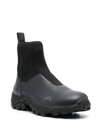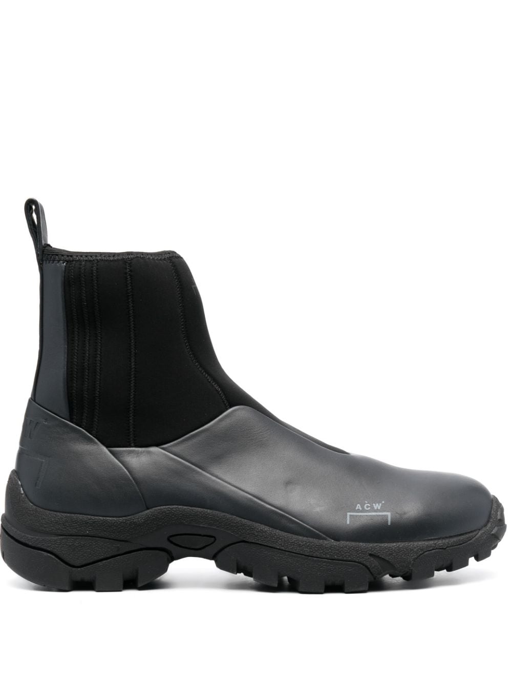 NC-1 Dirt boots The Dirt boots from A-COLD-WALL* displays the label's experimental aesthetic. Crafted from neoprene and leather panels, the design features a sleek slip-on silhouette set atop a ridged and curved rubber sole. Highlights - Black - Leather trim - Pull-tab at the heel - Logo print to the side - Round toe - Ridged rubber sole Imported Composition Outer: Calf Leather 100%, Fabric 100% Lining: Calf Leather 100%, Fabric 100% Sole: Rubber 100% SIZE & FIT Measurement HEEL 1.57 in(4 cm) HEIGHT 4.72 in(12 cm) Sole height 0.59 in(1.5 cm)