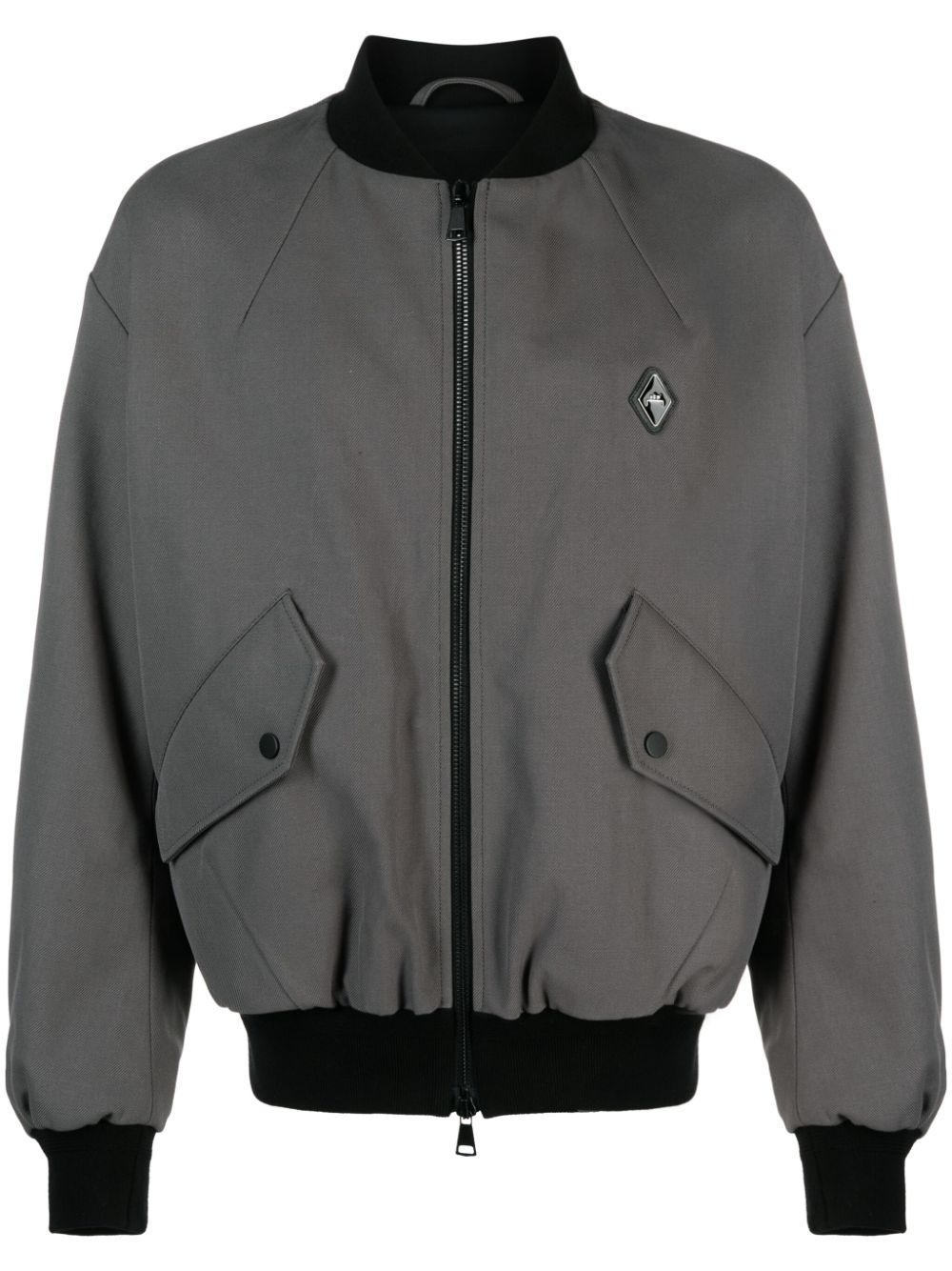 panelled cotton bomber jacket Highlights - Anthracite grey/black - Cotton - Panelled design - Applique logo - Band collar - Front two-way zip fastening - Long sleeves - Elasticated cuffs - Two side flap pockets - Ribbed cuffs and hem Made in Italy Composition Cotton 100% SIZE & FIT Model measurements Height 6 ft 1 in(1.85 m) Bust/Chest 38.58 in(98 cm) Hips 37 in(94 cm) Waist 30.31 in(77 cm) FittingInformation Designed to be unstructured, offering a loose fit throughout The ribbed hem offers a close, comfortable fit Made from a midweight non-stretch fabric This piece fits true to size – take your usual size Washing instructions Dry Clean Only