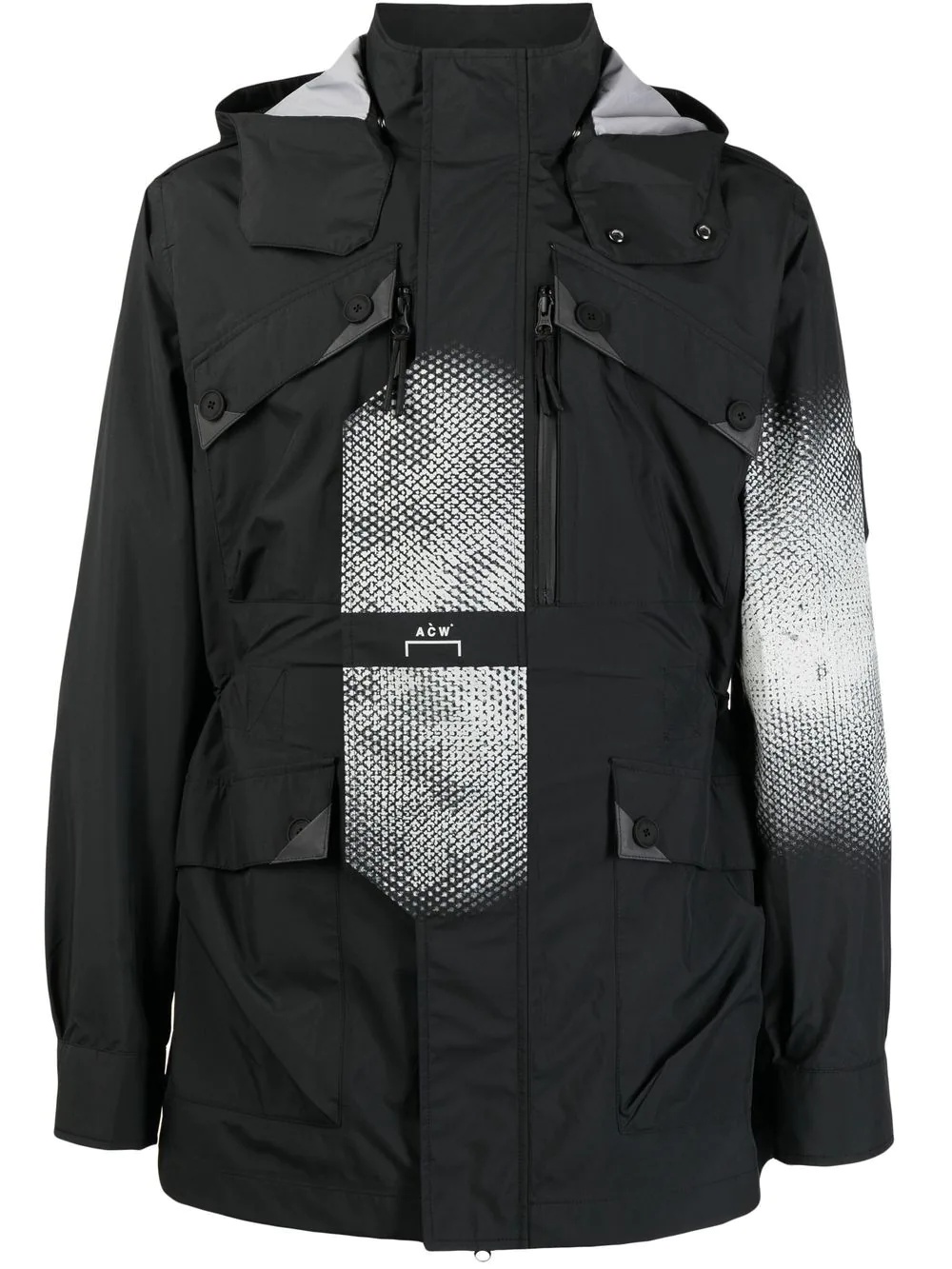printed-panel jacket black printed panels logo print to the rear logo print to the front high neck detachable hood long sleeves front zip fastening two side flap pockets two chest flap pockets When buying this unisex item, keep in mind that it is graded in standard men's sizing. Made in United Kingdom Composition Polyester 100% SIZE & FIT Model measurements Height 5 ft 11 in(1.8 m) Bust/Chest 28.34 in(72 cm) Hips 35.43 in(90 cm) Waist 23.62 in(60 cm) Measurement CHEST 45.66 in(116 cm) SLEEVE LENGTH 25.98 in(66 cm) Shoulder Width 19.29 in(49 cm) FittingInformation This piece is unisex. Please take care when selecting your size Designed for a loose fit for men and an oversized fit for women Made with a mid-weight non-stretch fabric Washing instructions Hand Wash