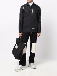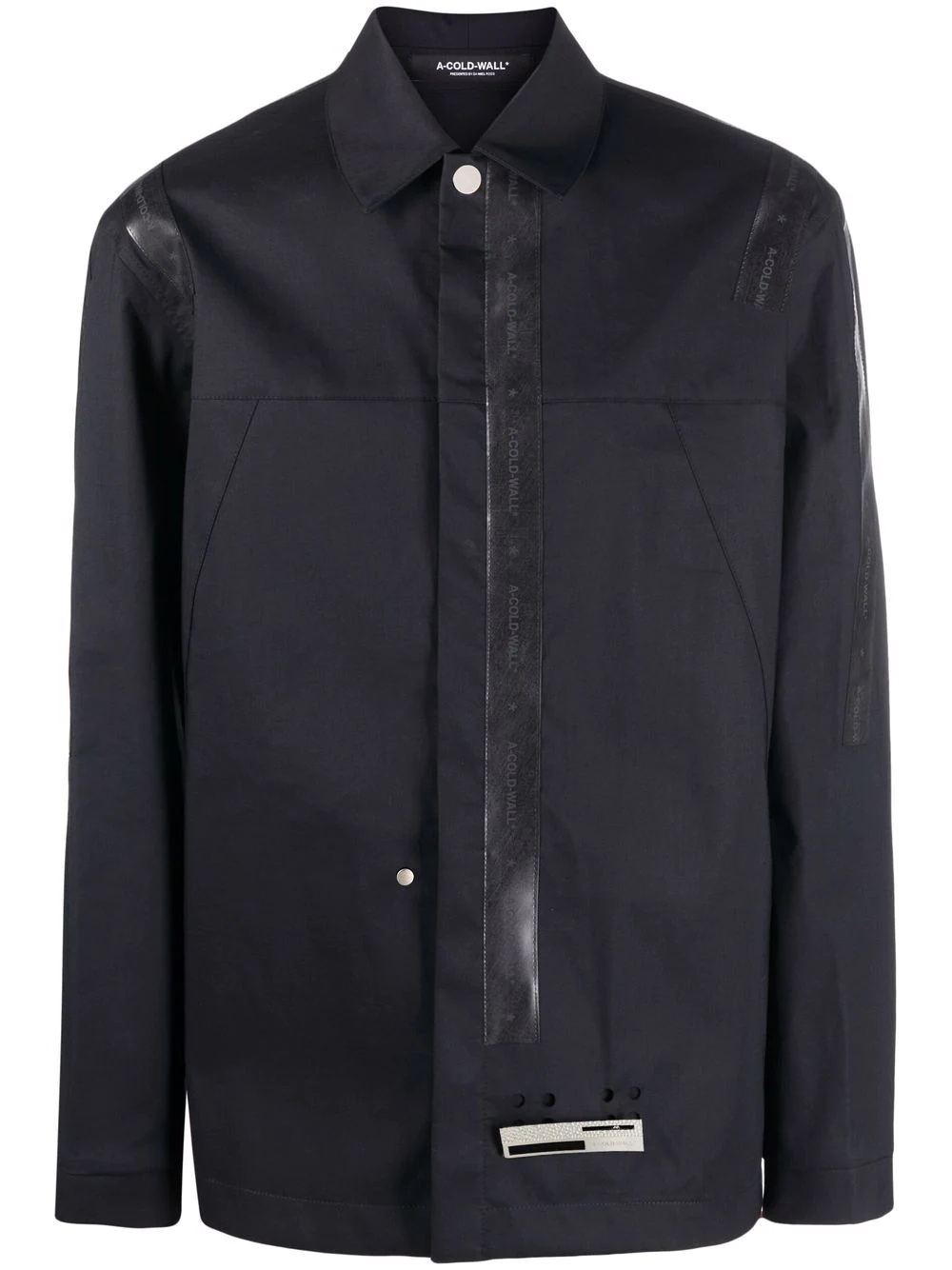rubber-trim shirt Black cotton rubber-trim shirt from A-COLD-WALL* featuring logo patch to the front, logo patch to the rear, eyelet detailing, classic collar, concealed front fastening, long sleeves and rubberised detailing. Made in United Kingdom Composition Cotton 100% SIZE & FIT Model measurements Height 6 ft 1 in(1.85 m) Bust/Chest 37.79 in(96 cm) Hips 37.4 in(95 cm) Waist 30.7 in(78 cm) FittingInformation This piece fits true to size. We recommend you get your regular size Cut for a loose fit Made with a mid-weight non-stretch fabric Washing instructions Dry Clean Only