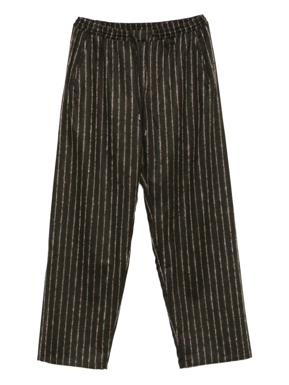 striped trousers Highlights - Brown - Vertical stripe pattern - Drawstring waist - Side slit pockets Made in Italy Composition Virgin Wool 93%, Mohair 6%, Polyamide 1% SIZE & FIT Model measurements Height 6 ft 2 in(1.87 m) Bust/Chest 36.41 in(92.5 cm) Hips 37 in(94 cm) Waist 29.52 in(75 cm) Washing instructions Read Manufacturer Guidelines