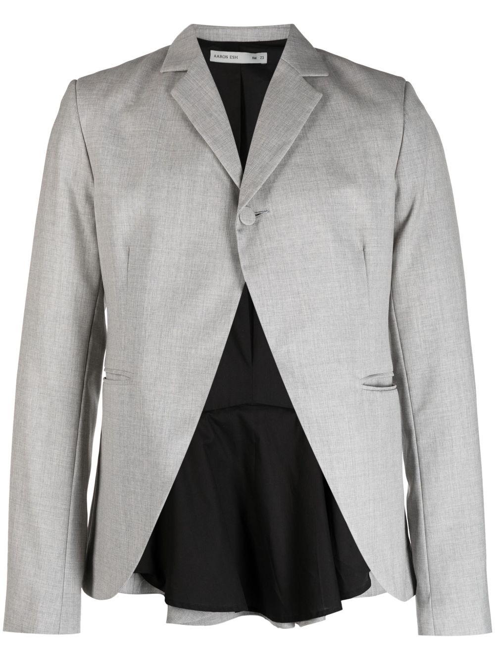 pleat-detail wool blazer Highlights - Heather grey - Wool - Melange effect - Pleat detailing - Notched collar - Front button fastening - Long sleeves - Two side slit pockets - Asymmetric hem Made in United Kingdom Composition Sleeve Lining: Acetate 100% Lining: Cotton 100% Body: Wool 100% SIZE & FIT Model measurements Height 6 ft 2 in(1.87 m) Bust/Chest 33.07 in(84 cm) Hips 35.43 in(90 cm) Waist 26.77 in(68 cm) FittingInformation Designed for a slim fit, offering a comfortable fit that sits just away from the body The internal shoulder pads offer a structured shape Made from a midweight non-stretch fabric This piece fits true to size – take your usual size