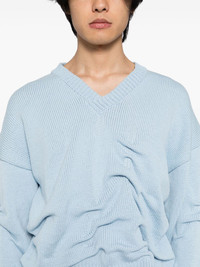 cotton jumper Highlights - Light blue - V-neck - Drop shoulder - Long sleeves - Ribbed cuffs and hem Imported Composition Cotton 100% SIZE & FIT Model measurements Height 5 ft 10 in(1.77 m) Bust/Chest 30.7 in(78 cm) Hips 35.82 in(91 cm) Waist 21.25 in(54 cm) FittingInformation This unisex piece is designed for a loose fit whether you usually select women's or men's sizes Made with a midweight knit, this piece offers some stretch