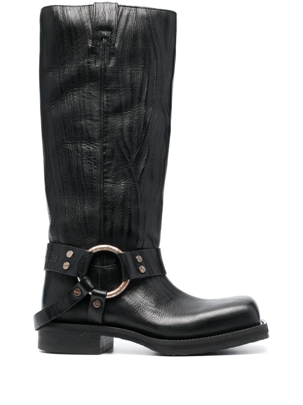 30mm knee-high leather boots Highlights - Black - Calf leather - Grained texture - Ring embellishment - Square toe - Knee-high - 30mm low block heel Made in Italy Composition Leather 100% SIZE & FIT Measurement CIRCUMFERENCE 15.74 in(40 cm) HEEL 1.18 in(3 cm) HEIGHT 14.17 in(36 cm) Sole height 0.59 in(1.5 cm)