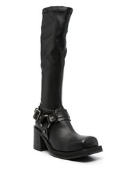 80mm square-toe leather boots Highlights - Black - Calf leather - Smooth grain - Decorative buckle detail - Ring embellishment - Square toe - Silver-tone hardware - Branded insole - Side zip fastening - Slip-on style - Mid block heel - Below-knee length Made in Italy Composition Leather 100% SIZE & FIT Measurement CIRCUMFERENCE 14.96 in(38 cm) HEEL 2.75 in(7 cm) HEIGHT 14.96 in(38 cm) Inside Sole 0.78 in(2 cm)