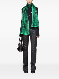 abstract-print scarf Highlights - Grass green/black - Organic silk - Satin weave - Abstract pattern print - Contrasting border - Finished edge - Rectangle shape - Wraparound style - This piece comes complete with a protective dust bag. Made in Italy Composition Organic Silk 100% SIZE & FIT Measurement LENGTH 78.74 in(200 cm) WIDTH 19.68 in(50 cm) Washing instructions Dry Clean Only