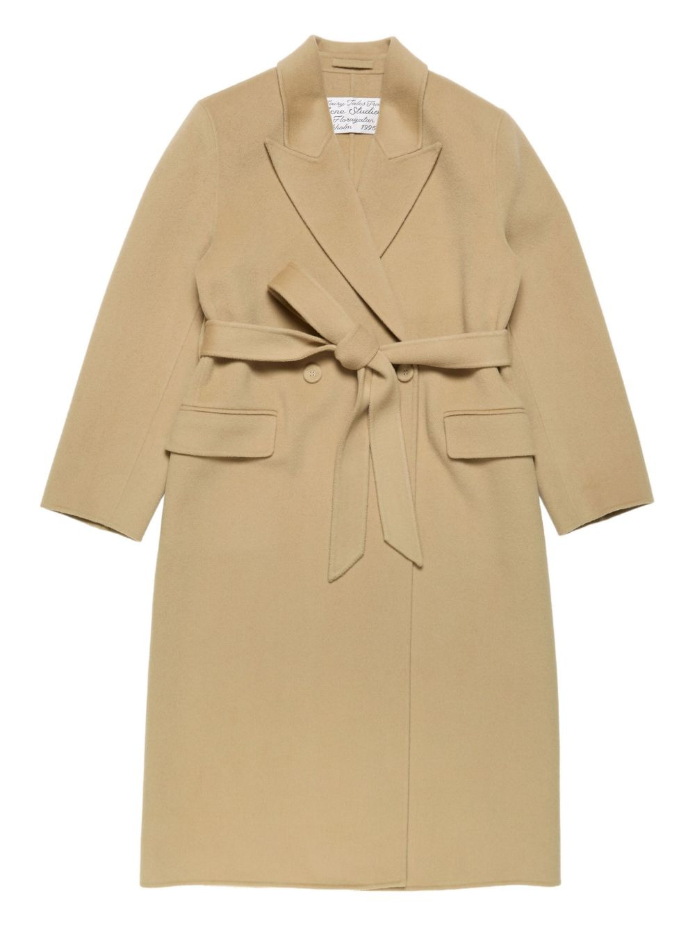 belted coat Highlights - Light beige - Notched lapels - Belt - Button fastening - Front flap pockets - Rear vent Imported Composition Outer: Wool 90%, Cashmere 10% Lining: Viscose 100% Washing instructions Read Manufacturer Guidelines