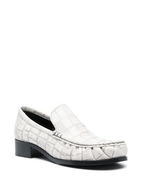 block-heel leather loafers off-white calf leather embossed crocodile effect almond toe slip-on style branded leather insole low block heel Made in Italy Composition Lining: Calf Leather 100% Outer: Calf Leather 100% Sole: Calf Leather 100% SIZE & FIT Measurement HEEL 1.77 in(4.5 cm) Sole height 0.39 in(1 cm)