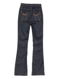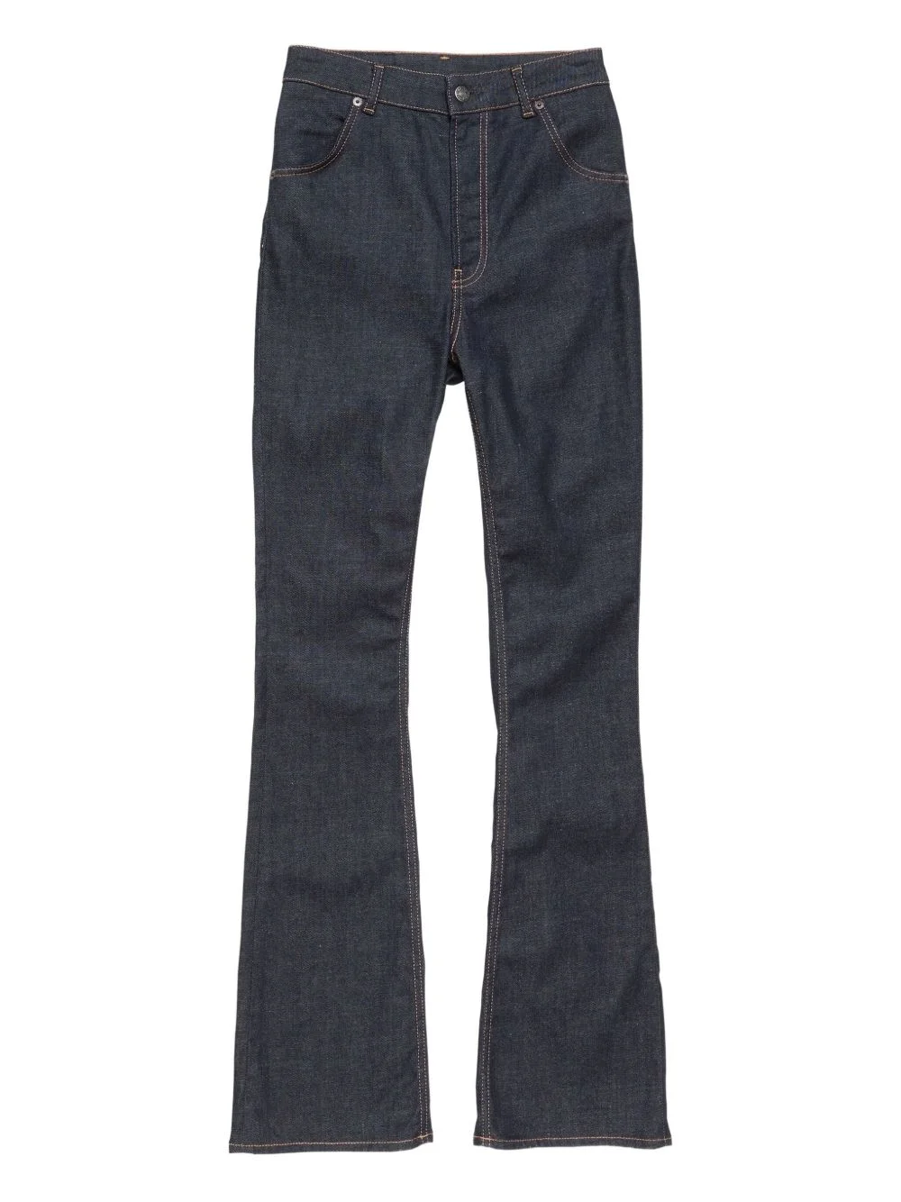 bow-detail flared trousers Highlights - Dark blue - Flared leg - High waist - Bow embroidery - Orange topstitching Made in Italy Composition Cotton 62%, Viscose 21%, Polyester 15%, Elastane 2% Washing instructions Read Manufacturer Guidelines
