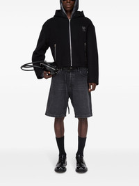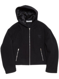 bow-embroidered jacket Highlights - Black - Wool blend - Embroidered motif - Front zip fastening - Slouchy hood - Long sleeves - Two side zip-fastening pockets Imported Composition Outer: Wool 75%, Nylon 25% Lining: Polyester 100%