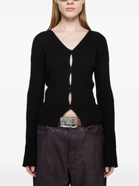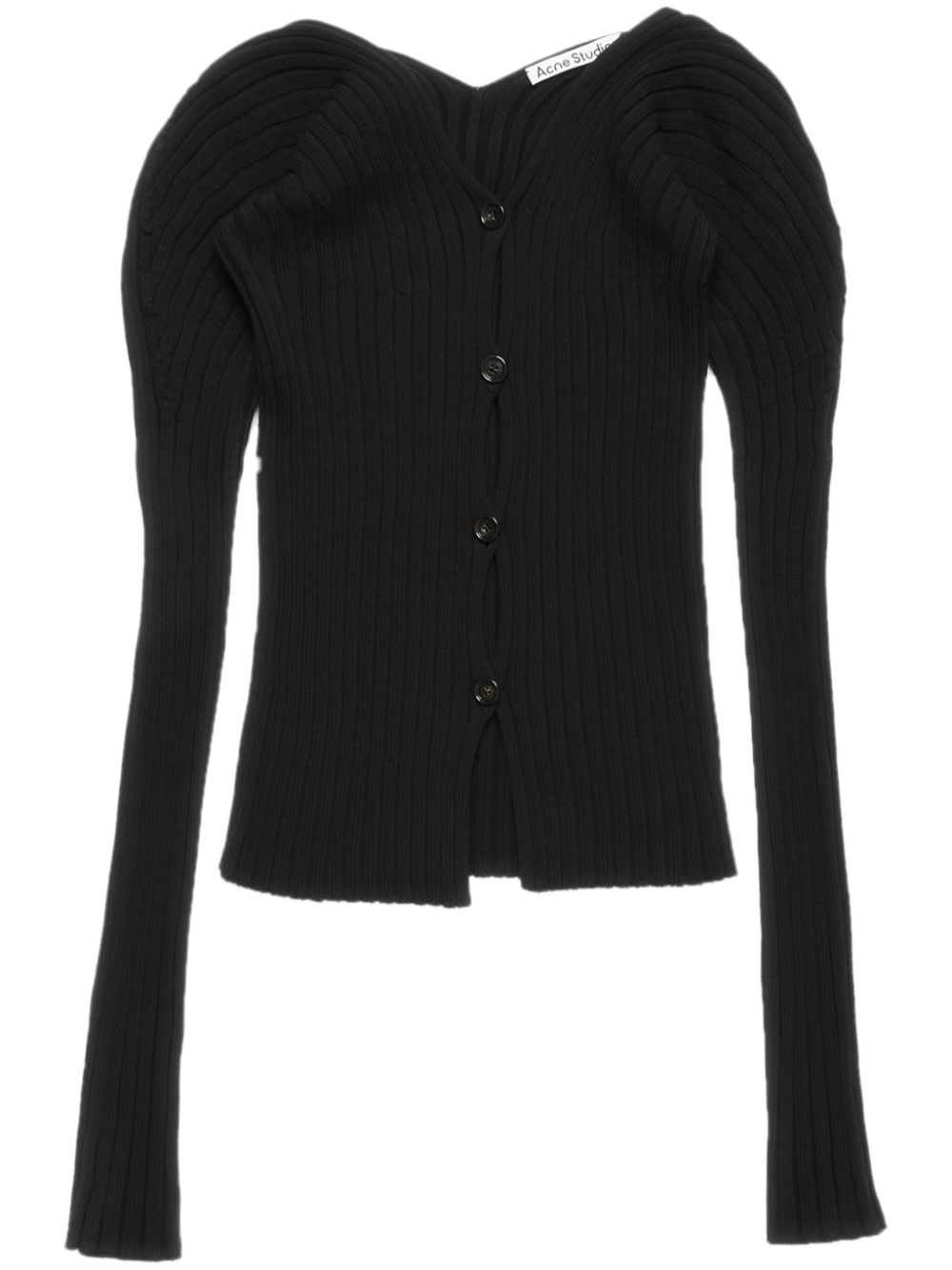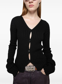 button-up ribbed cardigan Highlights - Black - V-neck - Front button fastening - Long sleeves Imported Composition Fabric 100%
