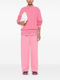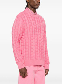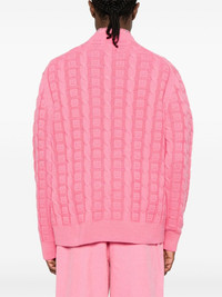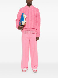 cable-knit jumper Highlights - Flamingo pink - Organic cotton blend - Cable knit and intarsia-knit logo - Crew neck - Long sleeves - Logo patch at the sleeve - Ribbed cuffs and hem - When buying this unisex item, keep in mind that it is graded in standard men's sizing. Imported Composition Organic Cotton 45%, RWS Wool 40%, Recycled Polyester 15% SIZE & FIT Model measurements Height 5 ft 10 in(1.78 m) Bust/Chest 33.07 in(84 cm) Hips 36.61 in(93 cm) Waist 24.8 in(63 cm) FittingInformation This unisex piece is designed for a relaxed fit whether you usually select women's or men's sizes Made with a midweight knit, this piece offers some stretch Washing instructions Hand Wash