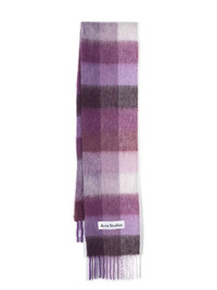 logo-patch checked scarf Highlights - Purple - White - Wool blend - Knitted construction - Brushed effect - Check pattern - Logo patch to the front - Rectangle shape - Fringed edge - Wraparound style Made in Italy Composition Alpaca Wool 33%, Wool 25%, Nylon 22%, Mohair 20% SIZE & FIT Measurement LENGTH 98.42 in(250 cm) WIDTH 11.02 in(28 cm)