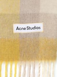 checked scarf Highlights - Light beige - Yellow - Alpaca-wool-mohair blend - Knitted construction - Brushed effect - Check pattern - Logo patch to the front - Rectangle shape - Fringed edge Made in Italy Composition Alpaca Wool 33%, Wool 25%, Nylon 22%, Mohair 20% SIZE & FIT Measurement LENGTH 98.42 in(250 cm) WIDTH 11.02 in(28 cm)