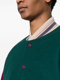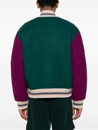 colour-block felted jacket Highlights - Green - Multicolour - Wool blend - Felted finish - Colour-block panelled design - Stripe trim - Logo patch to the front - Ribbed band collar - Front press-stud fastening - Drop shoulder - Long sleeves - Ribbed cuffs and hem - Two front jetted pockets - Internal press-stud fastening pocket - Straight hem - Diamond-quilted lining - When buying this unisex item, keep in mind that it is graded in standard men's sizing. Imported Composition Outer: Wool 60%, Polyester 39%, Viscose 1% Lining: Polyester 100% SIZE & FIT Model measurements Height 5 ft 10 in(1.78 m) Bust/Chest 31.49 in(80 cm) Hips 37 in(94 cm) Waist 23.62 in(60 cm) Measurement CHEST 48.81 in(124 cm) SLEEVE LENGTH 24.01 in(61 cm) LENGTH 25.59 in(65 cm) FittingInformation This unisex piece is designed for a loose fit whether you usually select women's or men's sizes The ribbed hem offers a close, comfortable fit Made from a midweight non-stretch fabric Washing instructions Dry Clean Only