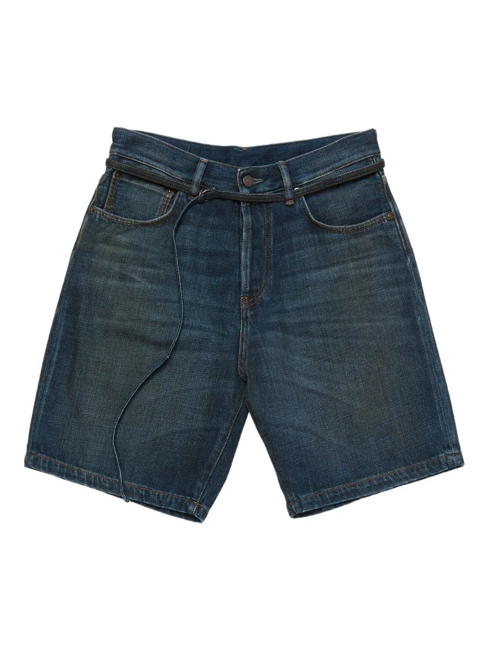 cotton denim shorts Highlights - Dark blue - Leather belt - Five-pocket design - Button fly - Belt loops Made in Italy Composition Calf Leather 100%, Cotton 100% Washing instructions Read Manufacturer Guidelines