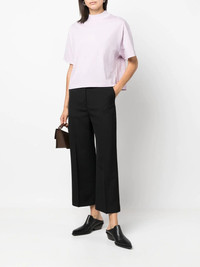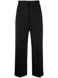 cropped straight-leg trousers Stockholm-based Acne Studios offers a modern take on tailoring in the design of these trousers from the AW22. Made from a soft wool blend, they sit high at the waist whilst boasting a cropped leg for a bold silhouette. Imported Composition Outer: Polyester 55%, Wool 45% Lining: Cotton 100% SIZE & FIT Model measurements Height 5 ft 11 in(1.8 m) Bust/Chest 33.07 in(84 cm) Hips 37.4 in(95 cm) Waist 25.19 in(64 cm) FittingInformation This piece fits true to size. We recommend you get your regular size Designed to be fitted at the waist and hips, loose over the leg Made with a mid-weight non-stretch fabric Washing instructions Dry Clean Only