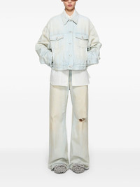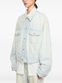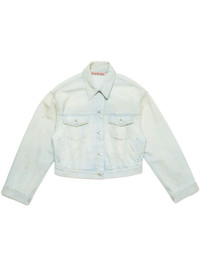 Denim jacket - Relaxed cropped fit - Light blue/white