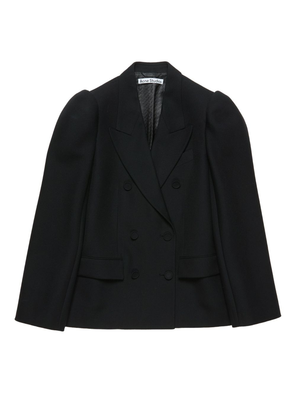 double-breasted jacket Highlights - Black - Long sleeves - Front button fastening - Peak lapels - Side flap pockets Imported Composition Outer: Wool 100% Viscose 50%, Acetate 50% Washing instructions Read Manufacturer Guidelines