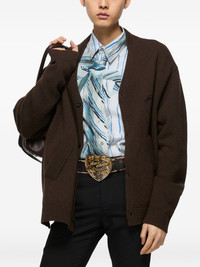 embroidered-logo buttoned cardigan Highlights - Dark brown - V-neck - Button fastening - Side pockets - Embroidered logo - Ribbed trims Imported Composition Wool 50%, Yak 50% Washing instructions Read Manufacturer Guidelines