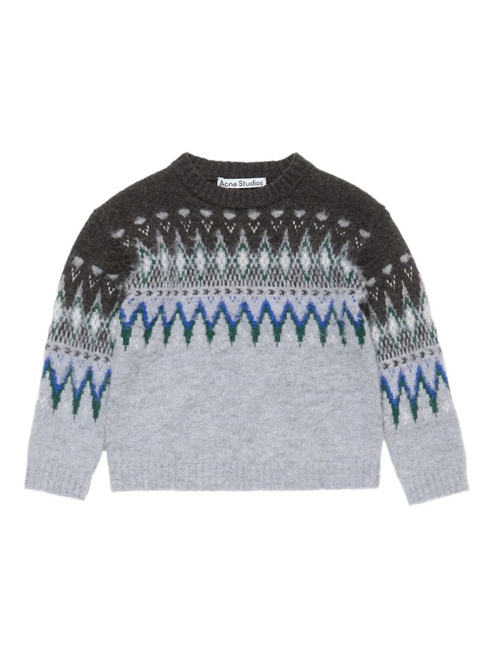 fairislepattern wool sweater Highlights - Grey - Fairisle pattern - Three-quarter sleeves - Round neck - Mohair-wool blend Imported Composition Mohair 34%, Wool 34%, Nylon 27%, Elastane 5% Washing instructions Read Manufacturer Guidelines