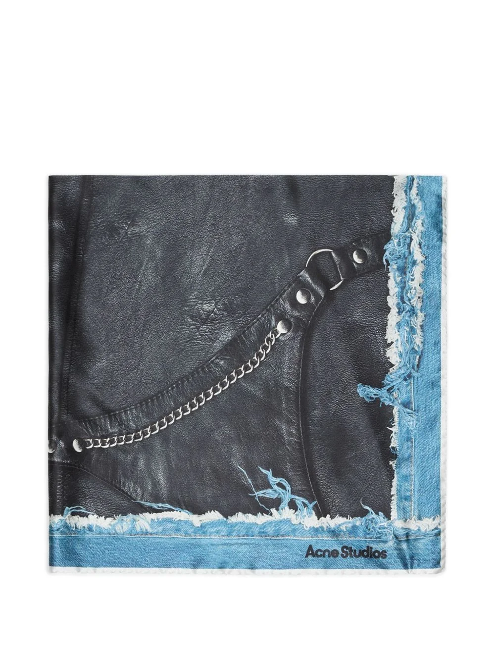frayed-printed scarf Highlights - Black/blue - Printed design Made in Italy Composition Organic Silk 100% SIZE & FIT Measurement LENGTH 35.43 in(90 cm) WIDTH 35.43 in(90 cm) Washing instructions Read Manufacturer Guidelines