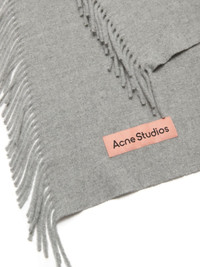 wool fringed-edge scarf Highlights - Light grey - Wool - Fine knit - Brushed finish - Melange effect - Fringed edge - Logo patch to the front - Wraparound style Made in Italy Composition RWS Wool 100% SIZE & FIT Measurement LENGTH 68.89 in(175 cm) WIDTH 17.71 in(45 cm)