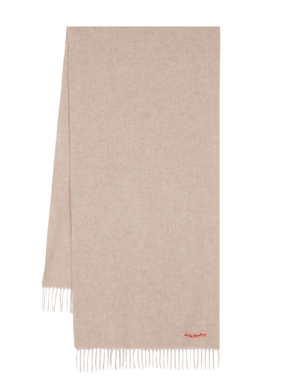 fringed wool scarf Acne Studios adds to its roster of covetable cold-weather accessories with this beige scarf. It’s Spun from sumptuous wool threads with a soft melange finish and rolled fringing at the edges. Highlights - Light beige - Wool - Melange effect - Logo tag - Fringed edge Made in Italy Composition Wool 100% SIZE & FIT Measurement LENGTH 78.74 in(200 cm) WIDTH 17.71 in(45 cm)