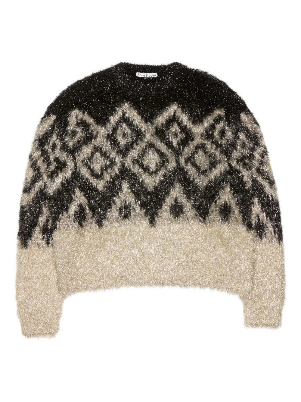 geometric-pattern sweater Highlights - Black - Geometric pattern - Metallic fibre detailing - Crew neck - Long sleeves Imported Composition Fabric 100% Washing instructions Read Manufacturer Guidelines