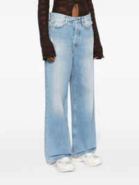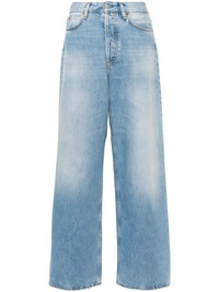 high-rise wide-leg jeans Highlights - Light blue - Cotton - Denim - Stonewashed - Ripped detailing - Whiskering effect - Contrast stitching - High-rise - Belt loops - Classic five pockets - Wide leg - Logo patch to the rear - Concealed fly and button fastening Made in Italy Composition Cotton 100% SIZE & FIT Model measurements Height 5 ft 11 in(1.8 m) Bust/Chest 31.49 in(80 cm) Hips 36.61 in(93 cm) Waist 24.4 in(62 cm) FittingInformation Designed with a dropped crotch, these jeans allow for a close fit at the waist and offer a loose and relaxed fit over the leg Sturdy and hard-wearing, this denim piece offers no stretch Washing instructions Machine Wash