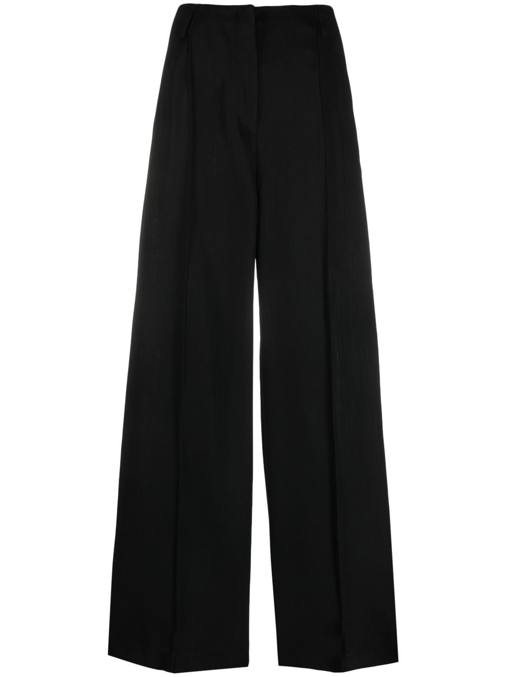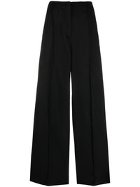 high-waisted wool-cotton palazzo pants Highlights - Jet black - Wool-cotton blend - Palazzo design - Pleat detailing - High-waisted - Belt loops - Concealed front fastening - Two side slash pockets - Two rear welt pockets - Wide leg Imported Composition Outer: Wool 69%, Viscose 31% Lining: Cotton 100% SIZE & FIT Model measurements Height 5 ft 9 in(1.76 m) Bust/Chest 33.07 in(84 cm) Hips 34.64 in(88 cm) Waist 25.59 in(65 cm) Measurement FRONT RISE 12.99 in(33 cm) INSIDE LEG 31.1 in(79 cm) HIPS 33.07 in(84 cm) LEG OPENING 25.19 in(64 cm) WAIST 23.62 in(60 cm) Washing instructions Dry Clean Only