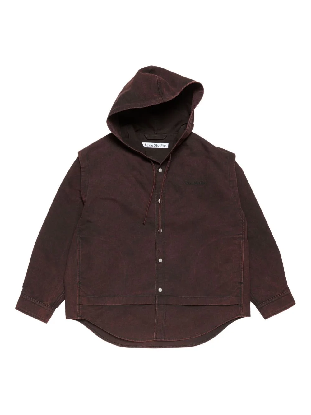 hooded organic cotton jacket Highlights - Burgundy - Organic cotton - Button fastening - Long sleeves - Buttoned cuffs - Hooded neck Imported Composition Organic Cotton 100% Washing instructions Read Manufacturer Guidelines