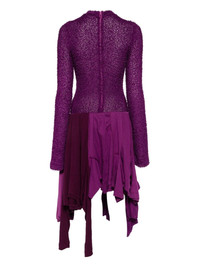 layered asymmetric dress Highlights - Dark purple - Cotton - Linen blend - Boucle construction - Jersey texture - Layered design - T-shirt-layers at the bottom - Ribbed panelling - Draped design - Pleat detailing - Crew neck - Long sleeves - Unlined - Sculpted hips - Mid-length - Asymmetric hem - Rear zip fastening Imported Composition Cotton 100%, Lyocell 94%, Viscose 80%, Linen/Flax 20%, Elastane 6%