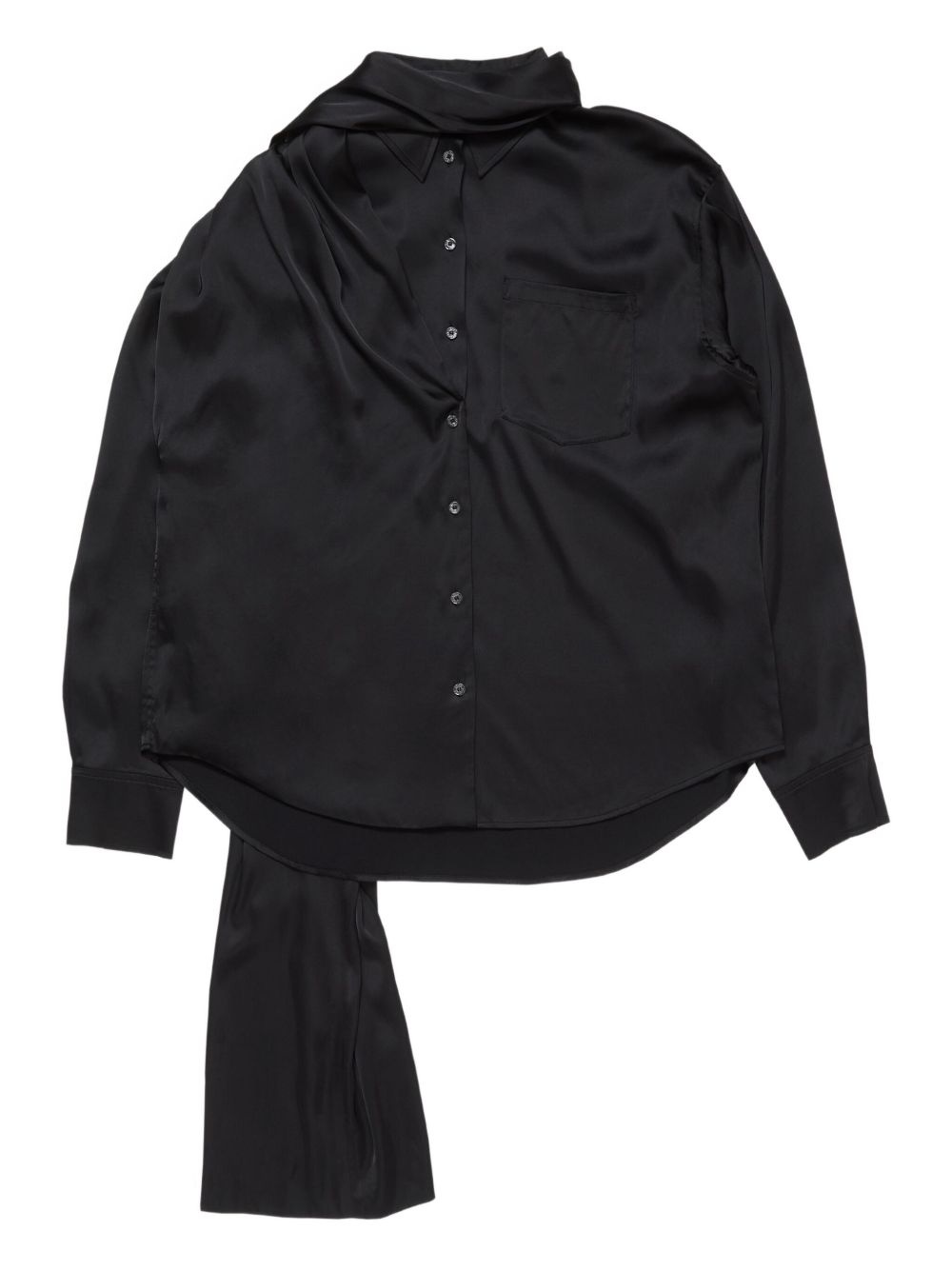 layered satin blouse Highlights - Black - Satin - Draped neck tie - Button fastening - Long sleeves - Chest pocket Imported Composition Viscose 97%, Elastane 3% Washing instructions Read Manufacturer Guidelines