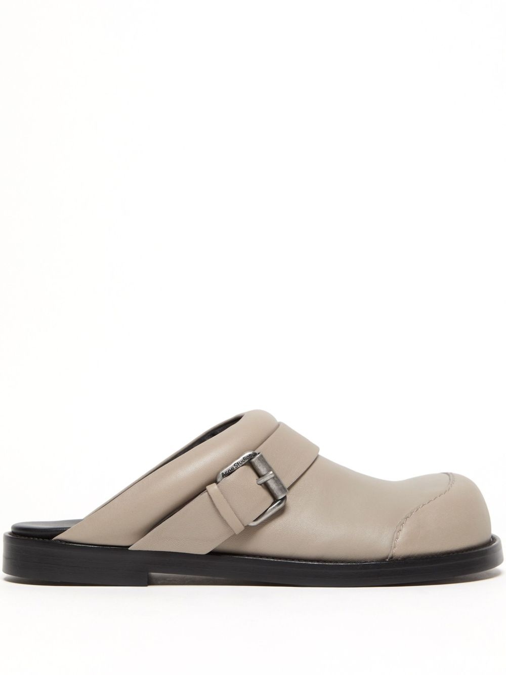 leather mules Highlights - Taupe - Buckle-strap fastening - Slip-on style - Logo-engraved buckle - Asymmetric toe Made in Italy Composition Outer: Lamb Skin 100% Sole: Rubber 100% Lining: Calf Leather 100%