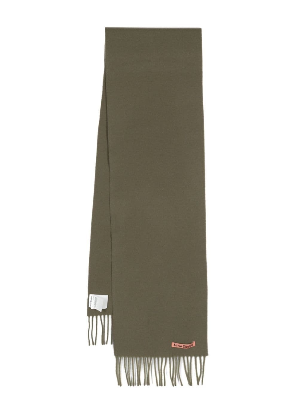 logo-applique wool scarf Highlights - Khaki - Wool - Brushed effect - Fringed edge - Applique logo - Wraparound style - When buying this unisex item, keep in mind that it is graded in standard men's sizing. Made in Italy Composition Wool 100% SIZE & FIT Measurement LENGTH 74.8 in(190 cm) WIDTH 11.02 in(28 cm) Washing instructions Dry Clean Only
