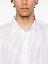 logo-embroidered striped shirt Highlights - White - Lyocell - Vertical stripe pattern - Classic collar - Short sleeves - Embroidered logo at the chest - Curved hem - Front button placket Imported Composition Lyocell 100% SIZE & FIT Model measurements Height 6 ft 1 in(1.85 m) Bust/Chest 36.61 in(93 cm) Hips 36.61 in(93 cm) Waist 28.74 in(73 cm) FittingInformation Designed for an oversized fit, offering additional room throughout Made from a midweight non-stretch fabric This piece fits true to size – take your usual size Washing instructions Machine Wash