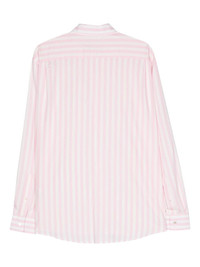 logo-embroidered striped shirt Highlights - Rose pink/white - Poplin texture - Vertical stripe print - Classic collar - Embroidered logo at the chest - Drop shoulder - Long sleeves with buttoned cuffs - Unlined - Rear curved hem - Front button placket Imported Composition Viscose 63%, Polyester 37% Washing instructions Machine Wash