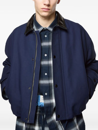 logo-patch bomber jacket Highlights - Navy blue - Organic cotton - Front zip fastening - Press-stud fastening - Long sleeves - Side zip-fastening pockets Imported Composition Organic Cotton 100% Washing instructions Read Manufacturer Guidelines