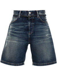 logo-patch denim shorts Highlights - Blue - Organic cotton blend - Denim - Button fly fastening - Mid-rise - Belt loops - Tied waist - Whiskering effect at the thighs - Classic five pockets - Logo patch to the rear - Straight leg - Above-knee length - When buying this unisex item, keep in mind that it is graded in standard men's sizing. Made in Italy Composition Calf Leather 100%, Organic Cotton 80%, Recycled Cotton 20% SIZE & FIT Model measurements Height 5 ft 10 in(1.77 m) Bust/Chest 31.88 in(81 cm) Hips 36.22 in(92 cm) Waist 24.01 in(61 cm) FittingInformation This piece is unisex and is designed with a wide-leg, whether you usually select women's or men's sizes Sturdy and hard-wearing, this denim piece offers no stretch Washing instructions Machine Wash
