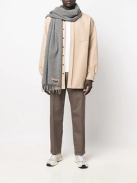 fringed wool scarf Highlights - Ash grey - Rws wool - Knitted construction - Logo patch to the front - Frayed edge Made in Italy Composition Wool 100% SIZE & FIT Model measurements Height 6 ft 2 in(1.87 m) Bust/Chest 36.41 in(92.5 cm) Hips 37 in(94 cm) Waist 29.52 in(75 cm) Measurement LENGTH 78.74 in(200 cm) WIDTH 17.71 in(45 cm)