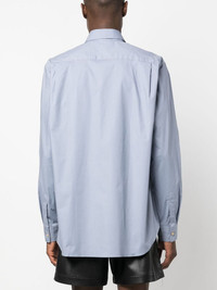 long-sleeve button-down shirt Highlights - Powder blue - Stretch-cotton - Classic collar - Front button fastening - Long sleeves - Curved hem Imported Composition Cotton 95%, Elastane 5% SIZE & FIT Model measurements Height 6 ft 2 in(1.89 m) Bust/Chest 38.18 in(97 cm) Hips 37 in(94 cm) Waist 30.7 in(78 cm) FittingInformation Designed to be unstructured, offering a loose fit throughout Made from a midweight stretch fabric, this piece offers elasticity and flexibility when worn This piece fits true to size – take your usual size