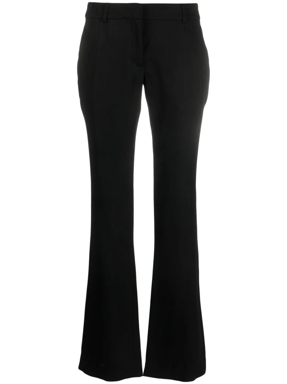 low-rise flared trousers Highlights - Jet black - Cotton-wool blend - Low-rise - Belt loops - Pressed crease - Concealed front fastening - Two side inset pockets - Two rear welt pockets - Flared design Imported Composition Outer: Wool 69%, Viscose 31% Lining: Cotton 100% SIZE & FIT Model measurements Height 5 ft 11 in(1.8 m) Bust/Chest 31.49 in(80 cm) Hips 36.61 in(93 cm) Waist 24.4 in(62 cm) Measurement INSIDE LEG 33.46 in(85 cm) HIPS 35.43 in(90 cm) WAIST 25.98 in(66 cm) FittingInformation Designed with a flared hem, these trousers allow for a close fit at the waist with a slim fit over the leg and widening towards the hem Made from a midweight non-stretch fabric This piece fits true to size – take your usual size Washing instructions Dry Clean Only