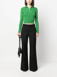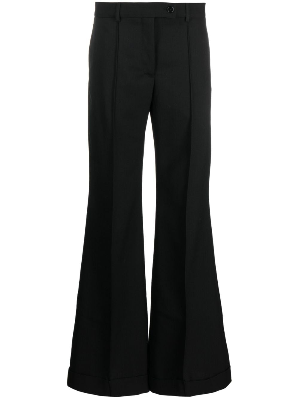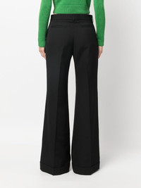 mid-rise flared trousers Highlights - Black - Belt loops - Flared - Mid-rise - Off-centre front fastening - Two side inset pockets - Two rear welt pockets Imported Composition Outer: Polyester 55%, Wool 45% Lining: Cotton 100% SIZE & FIT Model measurements Height 5 ft 10 in(1.77 m) Bust/Chest 35.03 in(89 cm) Hips 35.03 in(89 cm) Waist 23.62 in(60 cm) Measurement FRONT RISE 10.23 in(26 cm) INSIDE LEG 33.46 in(85 cm) HIPS 37.79 in(96 cm) LEG OPENING 27.55 in(70 cm) WAIST 31.49 in(80 cm) FittingInformation Designed with a flared hem, these trousers allow for a close fit at the waist with a slim fit over the leg and widening towards the hem Made from a midweight non-stretch fabric This piece fits true to size – take your usual size Washing instructions Dry Clean Only