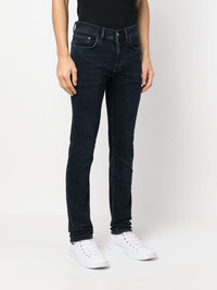 mid-rise slim-fit jeans midnight blue cotton blend belt loops classic five pockets slim cut Made in Italy Composition Cotton 94%, Polyester 5%, Elastane 1% SIZE & FIT Model measurements Height 6 ft 1 in(1.85 m) Bust/Chest 35.82 in(91 cm) Hips 37.79 in(96 cm) Waist 29.13 in(74 cm) Measurement INSIDE LEG 31.37 in(79.7 cm) FRONT RISE 9.56 in(24.3 cm) BACK RISE 13.97 in(35.5 cm) WAIST 14.8 in(37.6 cm) FittingInformation This piece fits true to size. We recommend you get your regular size Cut for a close fit Made with a mid-weight stretch fabric
