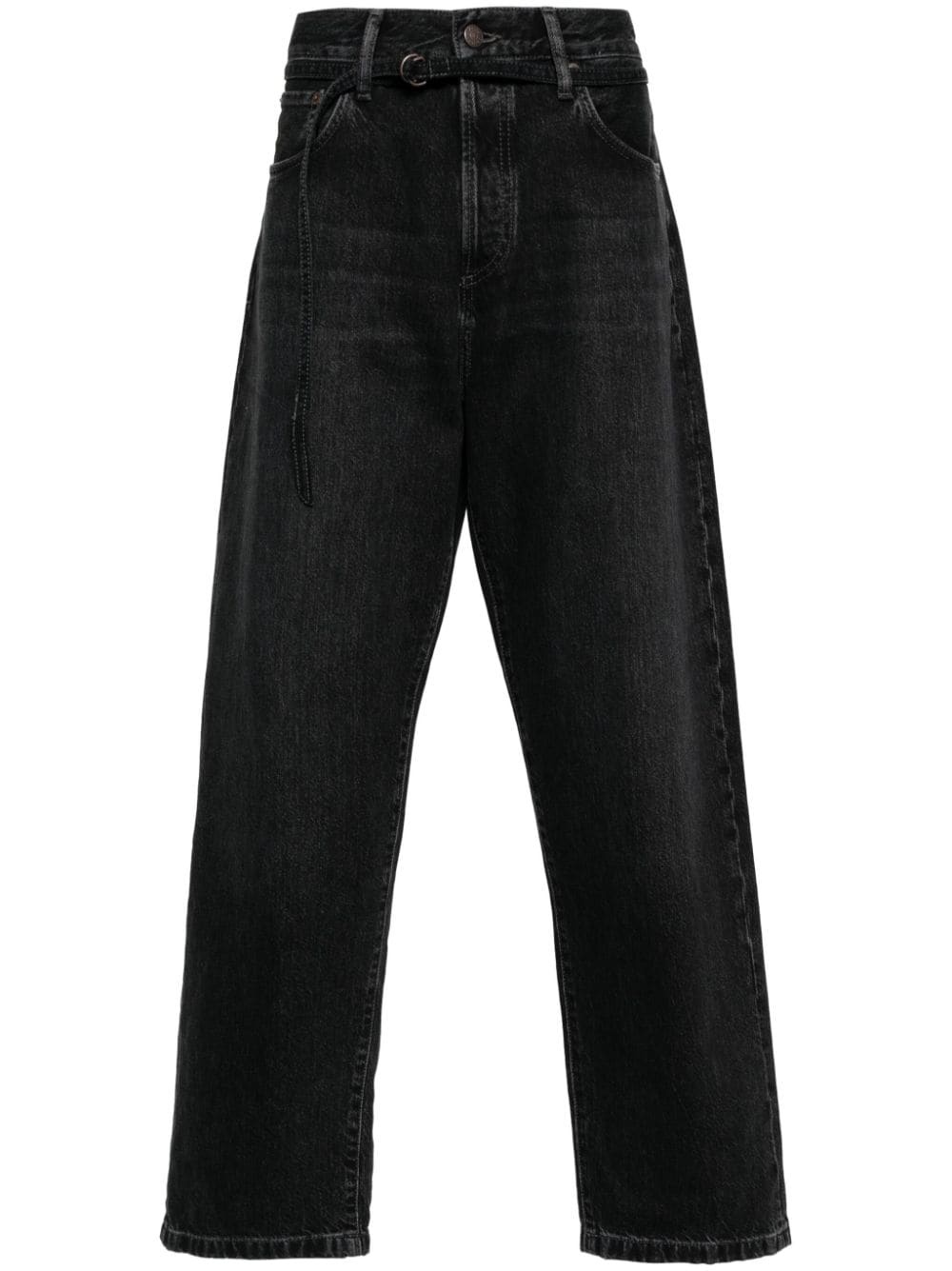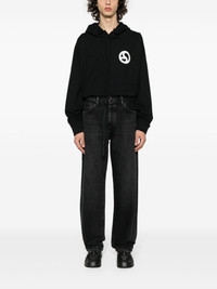 mid-rise wide-leg jeans Highlights - Black - Cotton - Denim - Faded effect - Mid-rise - Wide leg - Belt loops - Classic five pockets - Whiskering effect at the thighs - Logo patch to the rear - Logo-engraved buttons - Concealed fly and button fastening - Detachable and adjustable waist belt - When buying this unisex item, keep in mind that it is graded in standard men's sizing. Made in Italy Composition Cotton 100% SIZE & FIT Model measurements Height 5 ft 11 in(1.8 m) Bust/Chest 31.49 in(80 cm) Hips 36.61 in(93 cm) Waist 24.4 in(62 cm) FittingInformation This piece is unisex and is designed with a straight-cut over the leg whether you usually select women's or men's sizes The belt offers adjustability for fitted preferences Sturdy and hard-wearing, this denim piece offers no stretch Washing instructions Machine Wash