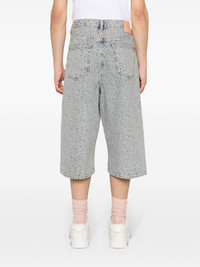 monogram-jacquard denim shorts Highlights - Blue/beige - Cotton - Washed denim - Mid-rise - Drop crotch - Monogram jacquard - Belt loops - Classic five pockets - Logo patch to the rear - Button fly fastening - When buying this unisex item, keep in mind that it is graded in standard men's sizing. Made in Italy Composition Cotton 100% SIZE & FIT Model measurements Height 5 ft 11 in(1.8 m) Bust/Chest 32.67 in(83 cm) Hips 36.22 in(92 cm) Waist 24.4 in(62 cm) FittingInformation This piece is unisex and is designed with a wide-leg, whether you usually select women's or men's sizes Sturdy and hard-wearing, this denim piece offers no stretch